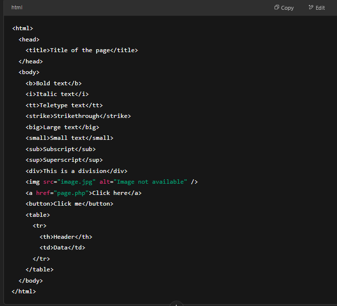 Learn more: HTML Tags at W3Schools