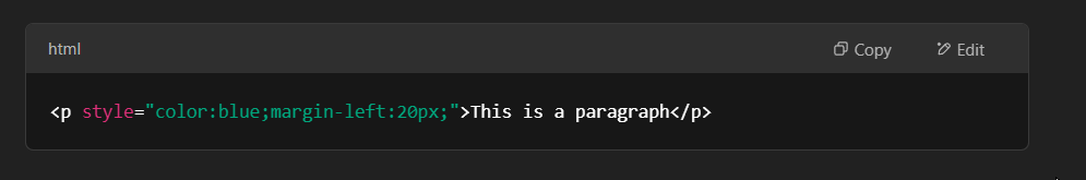 - <p style=”color:blue;margin-left:20px;”>This is a paragraph</p>