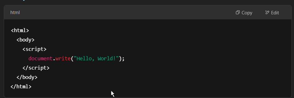 document.write(“Hello, World!”);