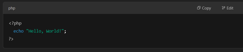 echo “Hello, World!”;